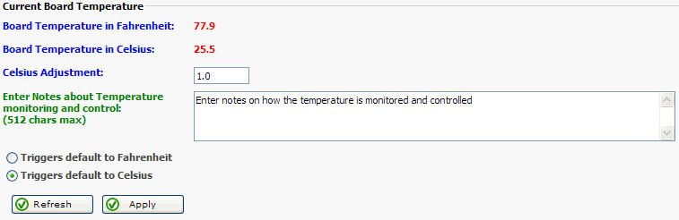 Below is a screen shot of the RMS-200v2 onboard temperature sensor setup page. Preliminary setup