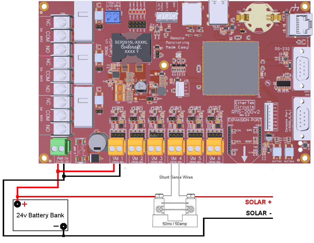 Below is an example diagram of how to use RMS-200v2 with a shunt to measure charging