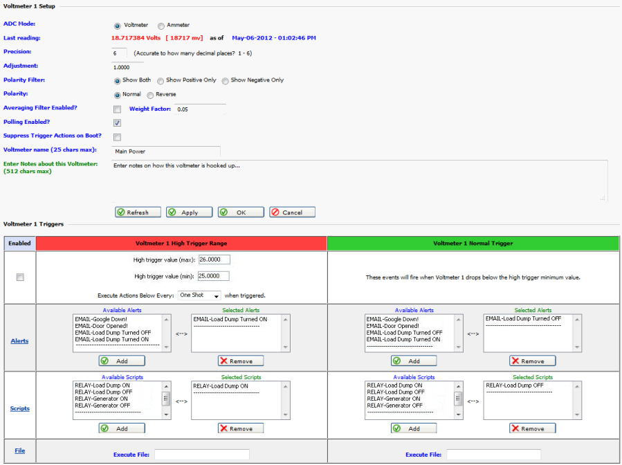 and acted upon. Each voltmeter trigger can also execute a custom file stored on the