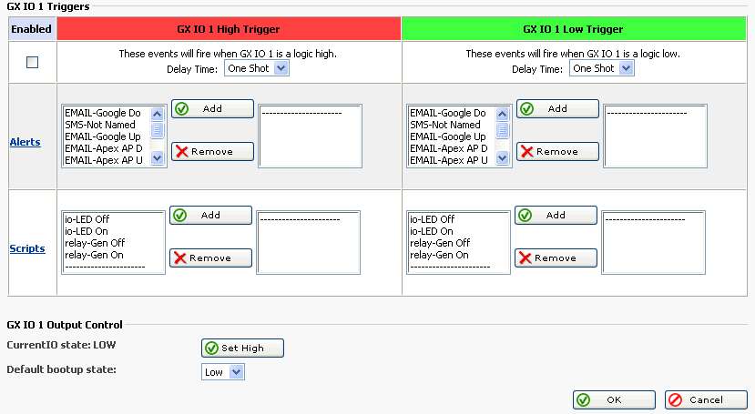 Below is a screen shot of the RMS-300 I/O setup page for GPIO 1. GPIO pins can be
