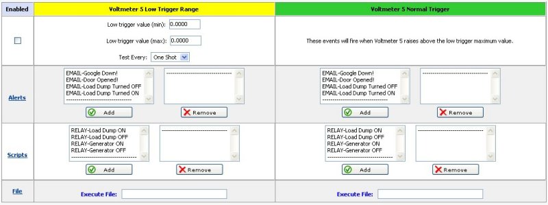 and acted upon. Each voltmeter trigger can also execute a custom file stored on the