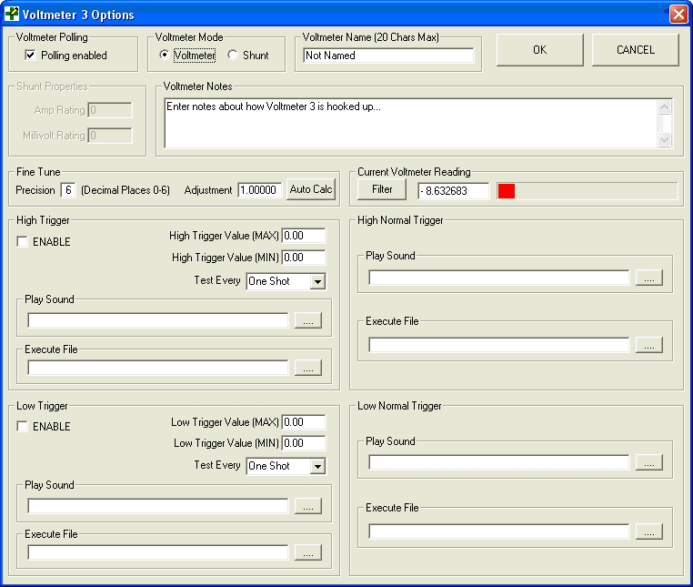 "Voltmeter Name" - This is where the Name of the voltmeter can be entered and edited. This